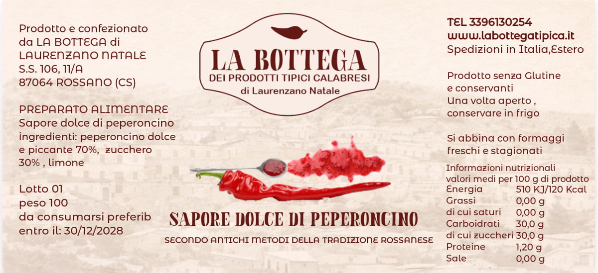 La confettura di peperoncino calabrese è un prodotto artigianale realizzato con materie prime scelte. Al palato presenta un gusto inizialmente dolce per poi risultare particolarmente piccante.