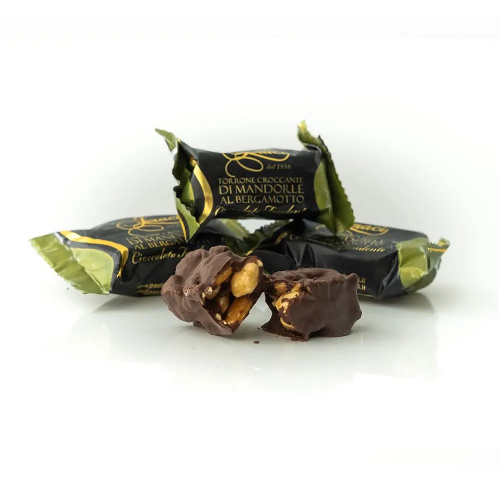 Torrone al Bergamotto ricoperto di cioccolato fondente, preparato con mandorle tostate che unite alla scorza del bergamotto garantiscono un gusto dolce e delicato al palato. Un sapore unico e una fragranza inconfondibili per questo dolce dal sapore irresistibile; l’Antica Pasticceria Ieraci produce torrone artigianale calabrese nel rispetto delle ricette tradizionali e con quel pizzico di innovativa che rende i nostri prodotti conosciuti in Italia e all’estero.
