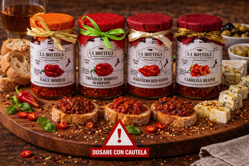 La nostra crema di peperoncino CAROLINA REAPER è realizzata artigianalmente e con soli peperoncini calabresi. Infatti , come riportato anche nelle etichette, il peperoncino ci è fornito direttamente dal consorzio dei produttori del peperoncino di calabria (vedi logo in alto), il che rende le nostre conserve piccanti rigorosamente calabresi.