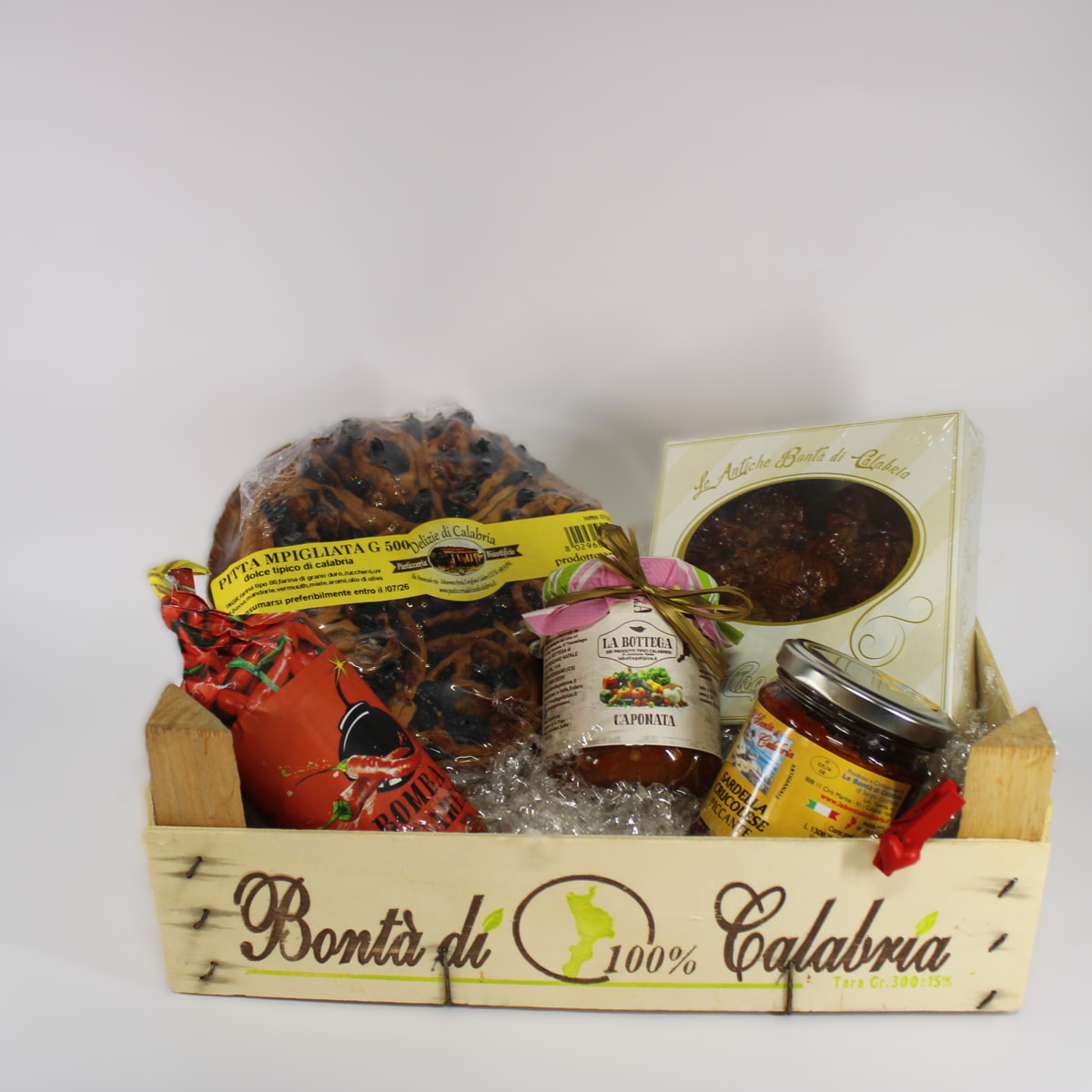 Il cesto tipico "SAPORITO" contiene diversi prodotti per tutta la famiglia, dal dolce al salato, per grandi e piccini. Contiene i prodotti tipici più rappresentativi della calabria, un cesto nuovo ricco di tradizioni