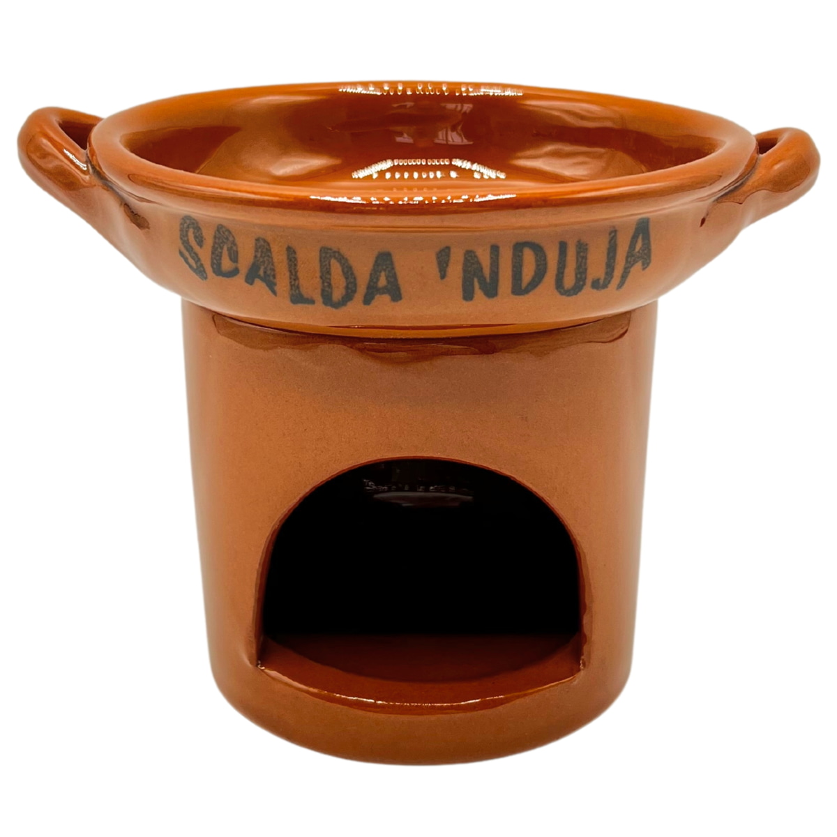 DA UNA LAVORAZIONE ARTIGIANALE CALABRESE, NASCE LO SCALDANDUJA , INDISPENSABILE PER CHI VUOLE GUSTARE AL MEGLIO DANDO RISALTO A PROFUMI E SAPORI DELLA NDUJA CALABRESE. SARA SUFFICIENTE ACCENDERE UNA CANDELINA ROTONDA E PORLA ALL INTERNO E PORLA AL CENTRO TAVOLA. E ORA PRONTI CON IL PANE E SPALMARE!!