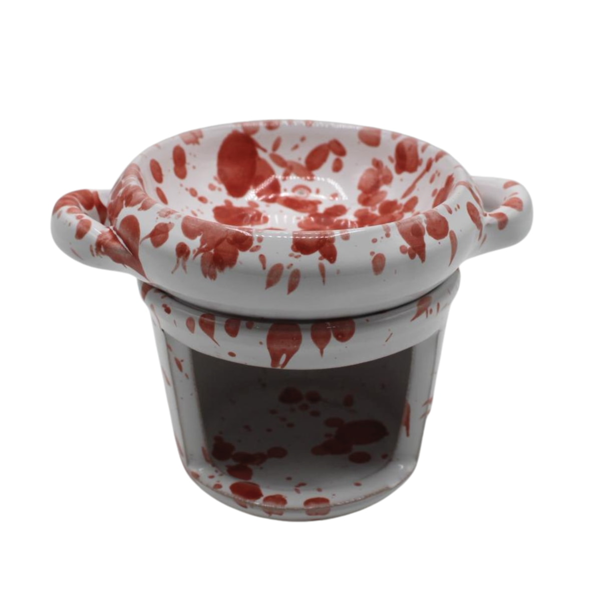 DA UNA LAVORAZIONE ARTIGIANALE CALABRESE, NASCE LO SCALDANDUJA , INDISPENSABILE PER CHI VUOLE GUSTARE AL MEGLIO DANDO RISALTO A PROFUMI E SAPORI DELLA NDUJA CALABRESE. SARA SUFFICIENTE ACCENDERE UNA CANDELINA ROTONDA E PORLA ALL INTERNO E PORLA AL CENTRO TAVOLA. E ORA PRONTI CON IL PANE E SPALMARE!!