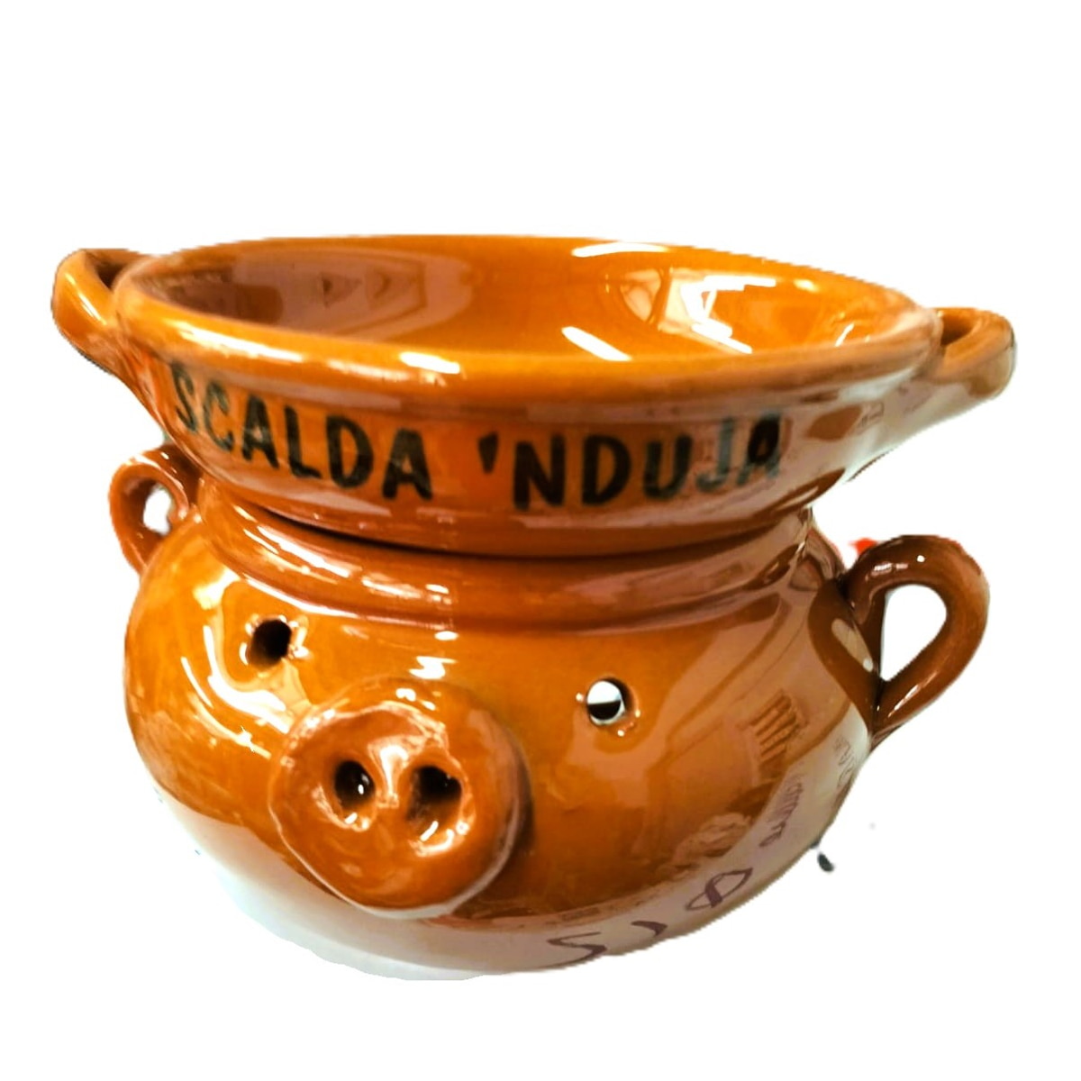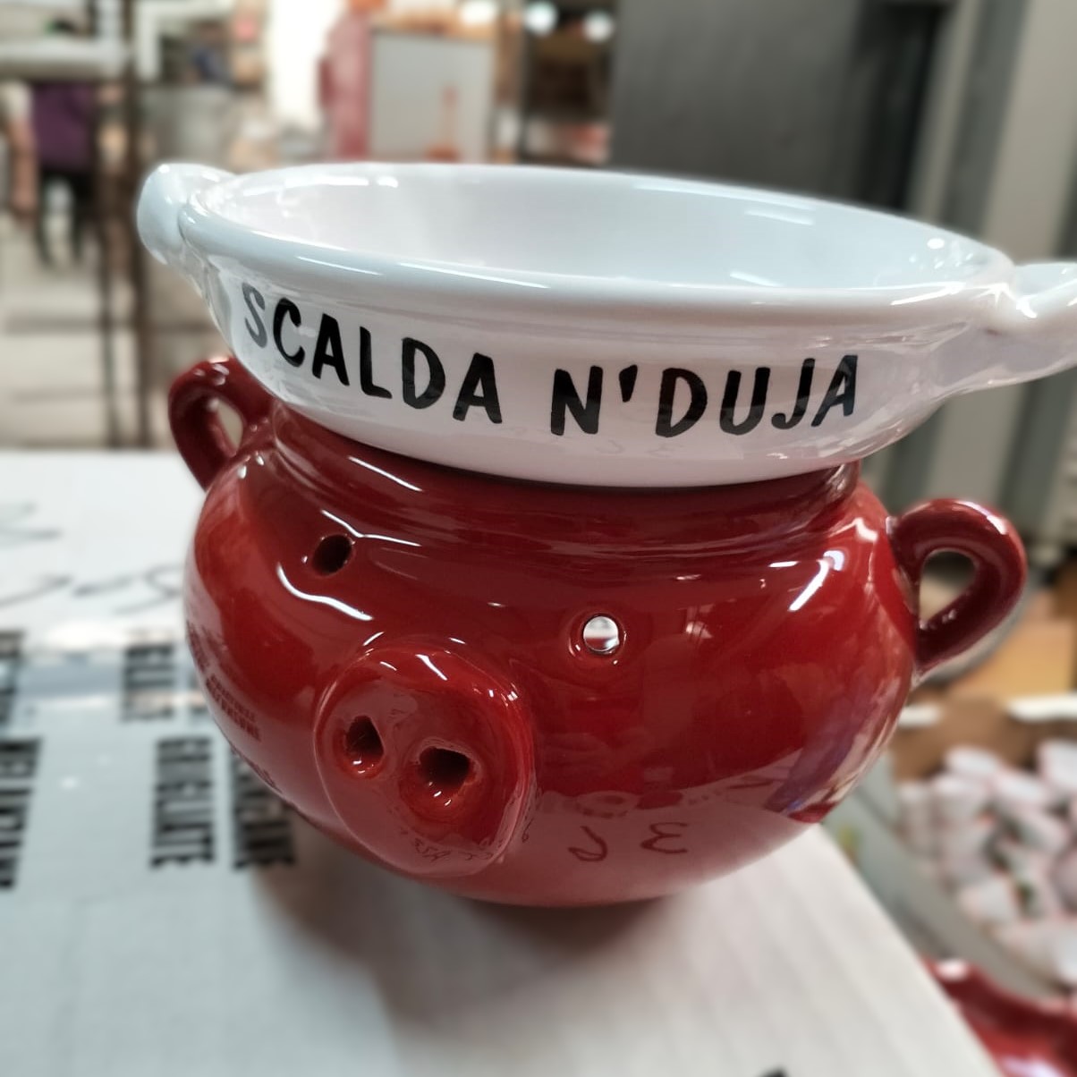 DA UNA LAVORAZIONE ARTIGIANALE CALABRESE, NASCE LO SCALDANDUJA , INDISPENSABILE PER CHI VUOLE GUSTARE AL MEGLIO DANDO RISALTO A PROFUMI E SAPORI DELLA NDUJA CALABRESE. SARA SUFFICIENTE ACCENDERE UNA CANDELINA ROTONDA E PORLA ALL INTERNO E PORLA AL CENTRO TAVOLA. E ORA PRONTI CON IL PANE E SPALMARE!!
