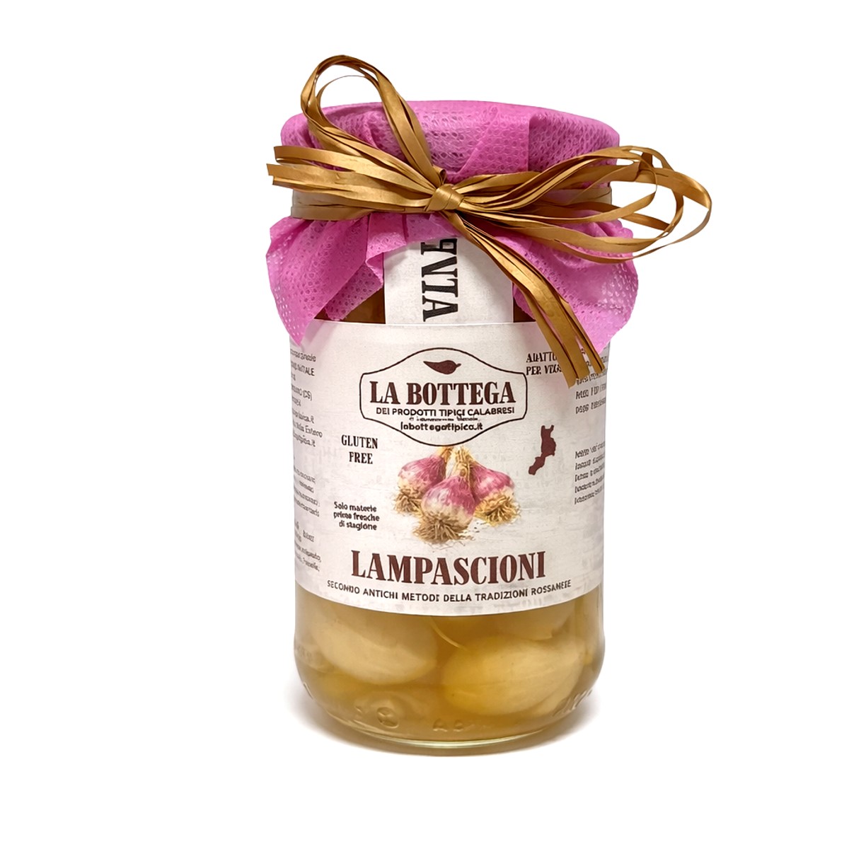 I lampascioni sott'olio sono una conserva tradizionale del sud Italia dal sapore amarognolo e consistenza tenera, puliti, lessati in acqua e aceto, e conservati in olio di oliva e semi di girasole e conditi con alloro, menta e peperoncino. Si consiglia come antipasto.